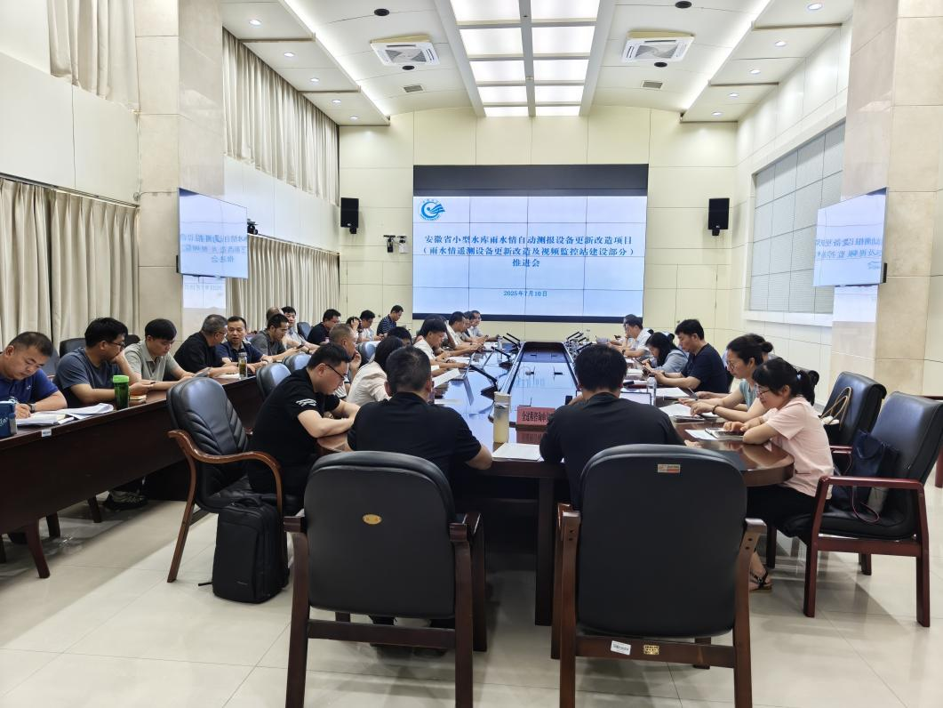2025年7月10日下午,安徽省小型水庫雨水情自動測報設備更新改造項目(雨水情遙測設備更新改造及視頻監控站建設部分)推進會在安徽省水文局召開。會議由省水文局主持,省水利廳、各市水文局相關負責同志,以及施工(一包、二包、三包)、全過程咨詢等單位代表參會。